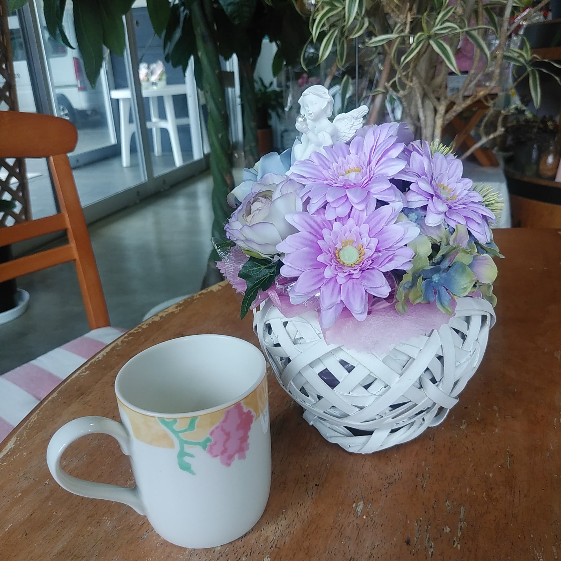 造花なので枯れることもなく、水換え不要です。ずっと華やかさが保てます。