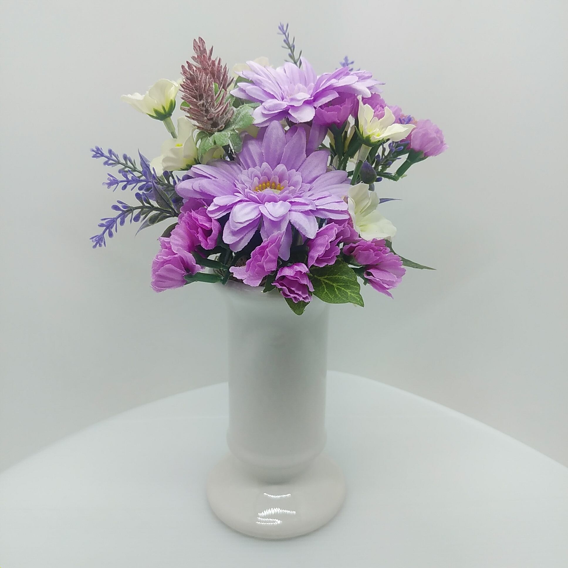 立春も過ぎて季節は雨水になりました。 お仏壇の供花も新しくして模様替え。 ガーベラをメインにしたアレンジです。 落ち着いた紫の色彩が心穏やかにしてくれますね。 え~これ造花?と皆さんビックリされます! ■サイズ 高さ 約23cm 幅 約15cm 花器高 約12cm ■花材の種類 4種類 ★商品は破損のないように丁寧に梱包して発送しています。